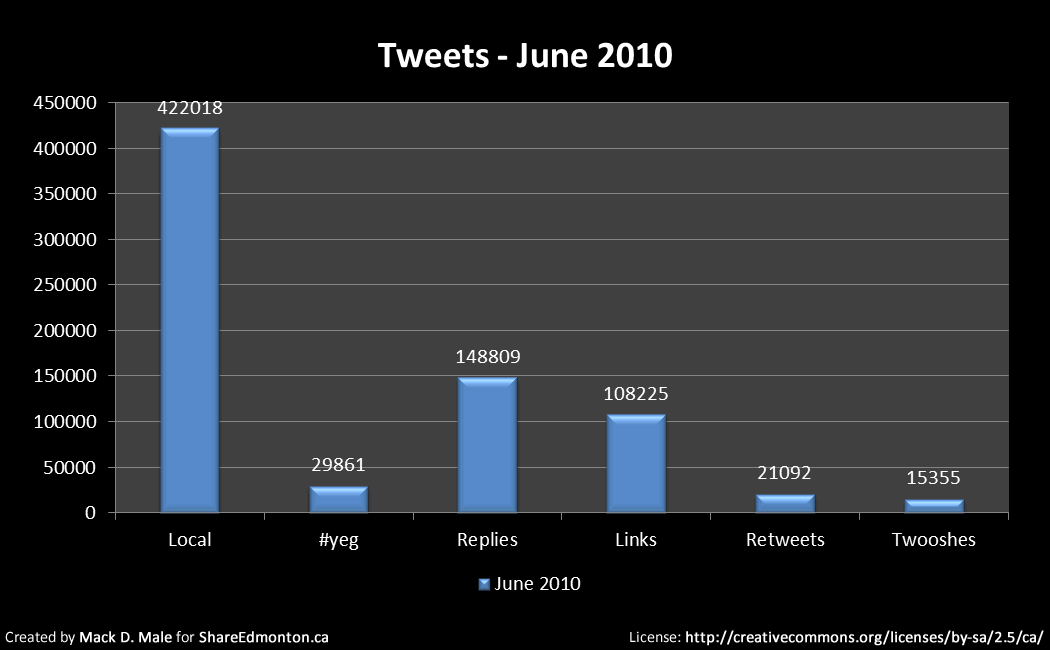 Welcome to the sixth State of the Edmonton Twittersphere of 2010, my look at the intersection of Twitter and Edmonton, AB. You can see last month’s stats here.